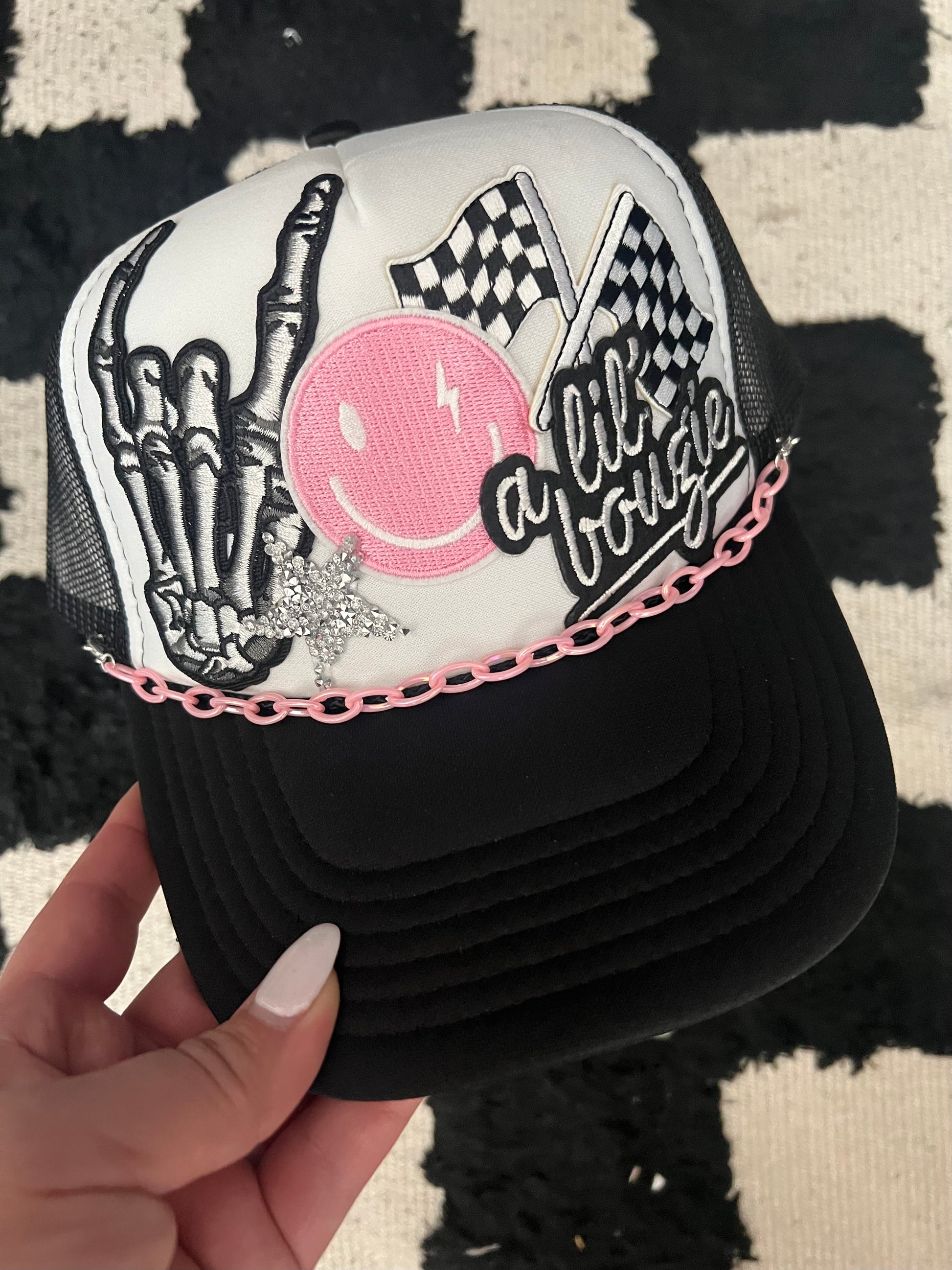 This custom made trucker patch hat is perfect for any occasion whether it be for spring/summer time, a lake hat, a gift for someone, or just a cute accessory to add a little spice to your outfit 🧢✨